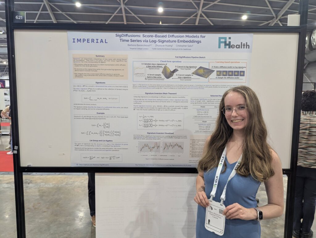 ICLR 2025 in Singapore was Barbora Barancikova’s first AI conference. A standout moment for her was Tim Rocktäschel’s keynote on the future of machine learning and AI safety. Barbora loved the poster sessions where she connected with authors and explored cutting-edge work. Many papers focused on generative models for biological applications, using advanced mathematics for non-Euclidean molecular data; this is also a direction she is excited to explore. She had a paper accepted by the conference, and presented her own poster which sparked great discussions and valuable feedback. Project topic: SigDiffusions: Score-Based Diffusion Models for Time Series via Log-Signature Embeddings.